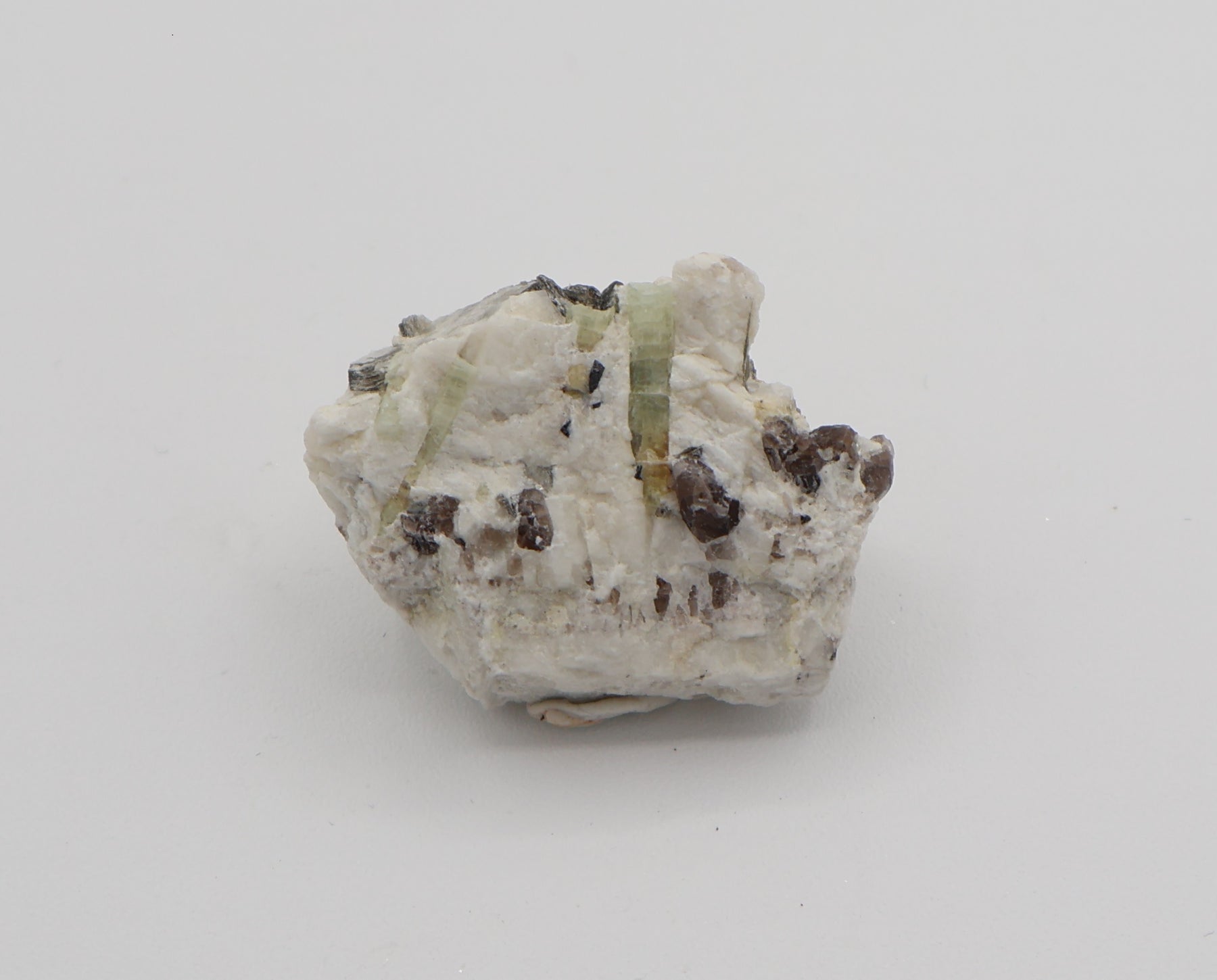 Bi-Colour Beryl with Mica with Mica on Smoky Quartz and Feldspar