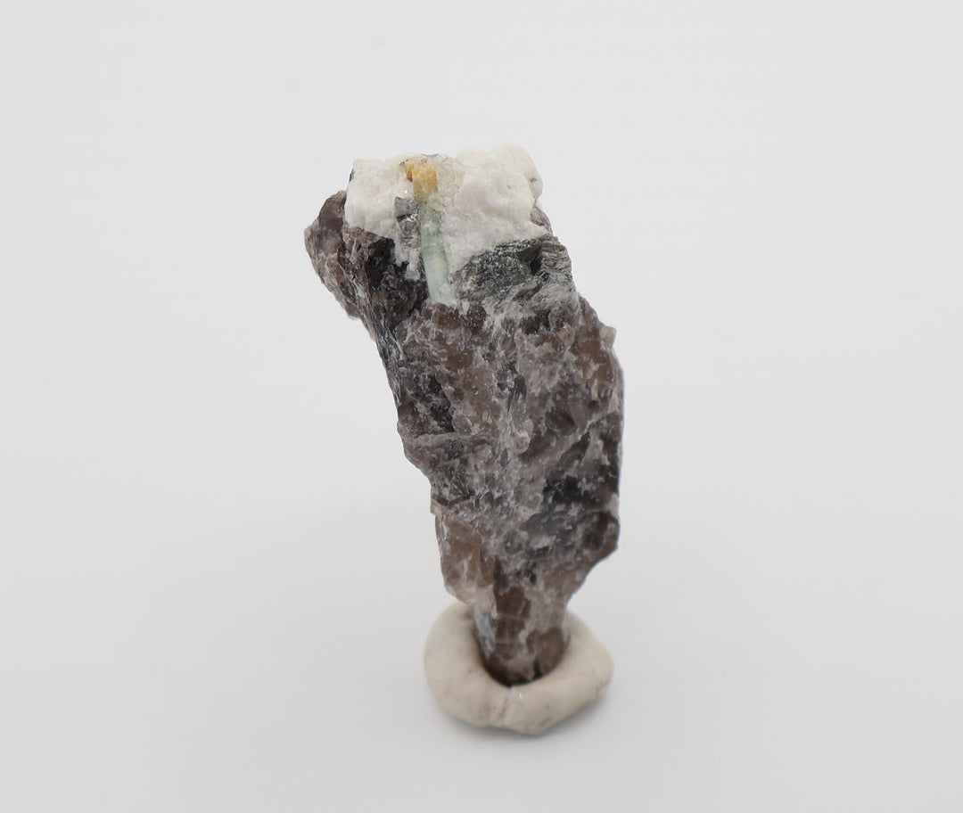 Heliodor Capped Aquamarine with Mica, Feldspar on Smoky Quartz