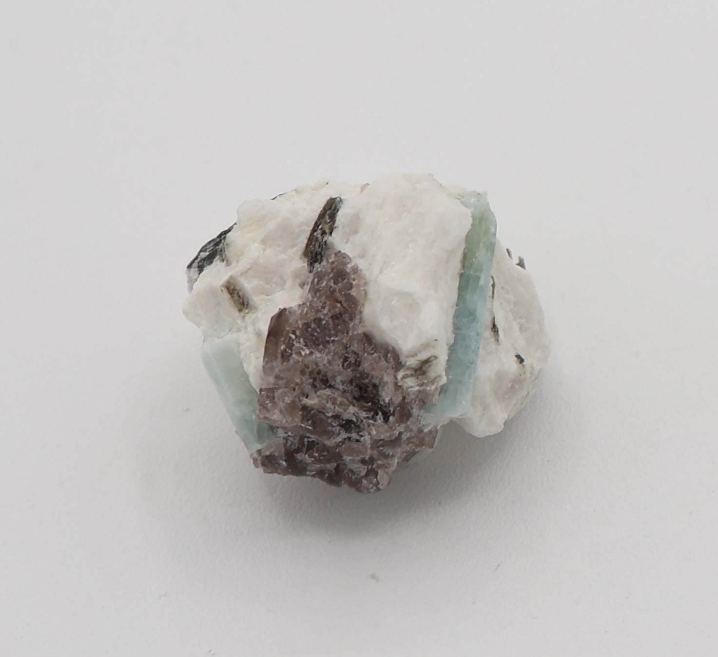 Aquamarine with Mica on Smoky Quartz and Feldspar